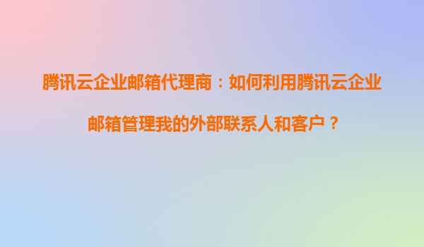 2025-11-03騰訊云企業(yè)郵箱代理商指南:高效管理外部聯(lián)系人與客戶 騰訊云企業(yè)郵箱的核心優(yōu)勢(shì) 騰訊云企業(yè)郵箱作為一款專業(yè)的企業(yè)級(jí)郵件服務(wù),不僅提供穩(wěn)定的郵件收發(fā)功能,更融合了騰訊云在安全、存儲(chǔ)及協(xié)同辦公領(lǐng)...