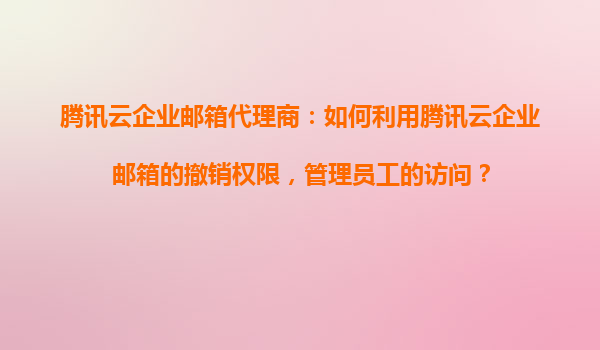 2025-11-03騰訊云企業(yè)郵箱代理商:如何利用撤銷(xiāo)權(quán)限高效管理員工訪問(wèn)權(quán)限 一、騰訊云企業(yè)郵箱的核心優(yōu)勢(shì) 作為國(guó)內(nèi)領(lǐng)先的企業(yè)級(jí)郵箱服務(wù)提供商,騰訊云企業(yè)郵箱憑借以下優(yōu)勢(shì)成為眾...