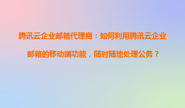 2025-11-03騰訊云企業(yè)郵箱代理商指南:如何高效利用移動(dòng)端功能隨時(shí)隨地處理公務(wù) 騰訊云企業(yè)郵箱的移動(dòng)辦公優(yōu)勢(shì) 在數(shù)字化辦公時(shí)代,移動(dòng)端的高效協(xié)同能力成為企業(yè)提升生產(chǎn)力的關(guān)鍵。騰...