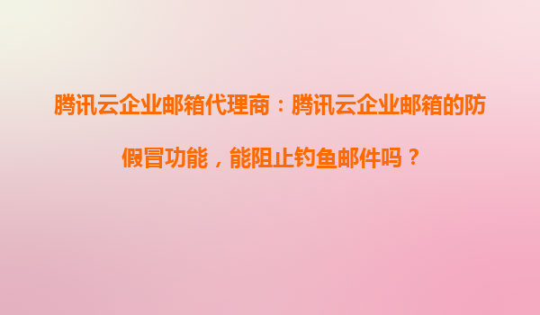 2025-11-03騰訊云企業(yè)郵箱代理商:騰訊云企業(yè)郵箱的防假冒功能,能阻止釣魚(yú)郵件嗎? 引言 隨著互聯(lián)網(wǎng)技術(shù)的飛速發(fā)展,企業(yè)郵箱已經(jīng)成為企業(yè)內(nèi)部溝通和外部業(yè)務(wù)往來(lái)的重要工具。然而,隨之而來(lái)的網(wǎng)絡(luò)安全問(wèn)題也日益嚴(yán)...