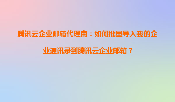 2025-11-03騰訊云企業(yè)郵箱代理商指南:如何批量導(dǎo)入企業(yè)通訊錄到騰訊云企業(yè)郵箱 在數(shù)字化辦公時(shí)代,企業(yè)郵箱不僅是溝通工具,更是企業(yè)管理的重要組成部分。騰訊云企業(yè)郵箱憑借其穩(wěn)定性、安全性及與騰訊生態(tài)的無(wú)縫銜接...