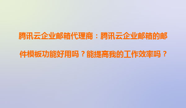 2025-11-03騰訊云企業(yè)郵箱代理商:騰訊云企業(yè)郵箱的郵件模板功能好用嗎?能提高我的工作效率嗎? 一、騰訊云企業(yè)郵箱的核心優(yōu)勢 作為國內(nèi)領(lǐng)先的云計(jì)算服務(wù)商,騰訊云企業(yè)郵箱融合了騰訊系產(chǎn)品的技術(shù)積累與生態(tài)資源,具備以下...