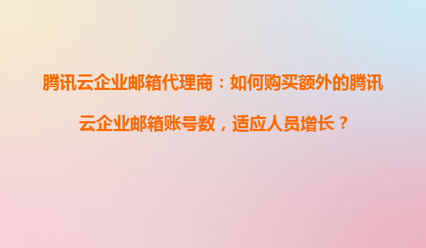 2025-11-03騰訊云企業(yè)郵箱代理商指南:如何購買額外賬號數(shù),適應(yīng)人員增長? 一、騰訊云企業(yè)郵箱的核心優(yōu)勢 騰訊云企業(yè)郵箱作為國內(nèi)領(lǐng)先的商務(wù)通信解決方案,憑借以下優(yōu)勢成為企業(yè)數(shù)字化轉(zhuǎn)型的首選: ...