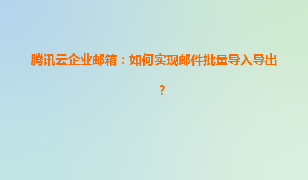2025-04-14騰訊云企業(yè)郵箱郵件批量導(dǎo)入導(dǎo)出功能解析 在數(shù)字化辦公場景中,企業(yè)郵箱的郵件數(shù)據(jù)管理效率直接影響團隊協(xié)作質(zhì)量。騰訊云企業(yè)郵箱通過創(chuàng)新的批量導(dǎo)入導(dǎo)出功能,為企業(yè)用戶提供了高效便捷的郵件管理...