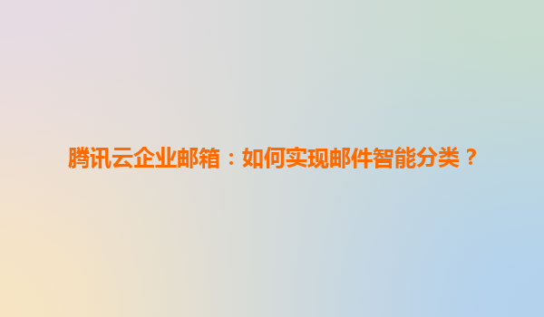 2025-04-11騰訊云企業(yè)郵箱:如何實現(xiàn)郵件智能分類? 一、郵件智能分類的重要性與需求背景 隨著企業(yè)信息化程度的提升,日常郵件處理效率成為影響團隊協(xié)作的關鍵因素。傳統(tǒng)郵箱依賴手動分類,面對海量郵件時易出現(xiàn)...