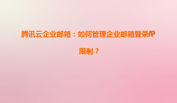 2025-04-09騰訊云企業(yè)郵箱:如何管理企業(yè)郵箱登錄IP限制? 一、企業(yè)郵箱登錄IP限制的核心意義 企業(yè)郵箱作為日常辦公的核心工具,其安全性直接影響企業(yè)數(shù)據(jù)資產(chǎn)。通過設(shè)置登錄IP限制,企業(yè)可有效防止以下風(fēng)險: ...