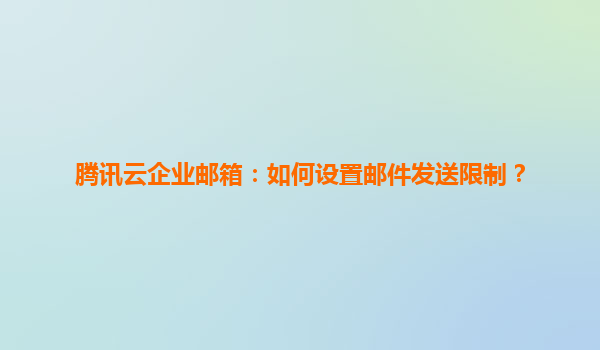 4008-020-360 騰訊云企業(yè)郵箱:郵件發(fā)送限制設置指南 一、郵件發(fā)送限制的重要性 在企業(yè)日常運營中,郵件作為核心溝通工具,其安全性與穩(wěn)定性直接影響業(yè)務效率。為避免賬號被濫用、防止垃圾郵件泛濫或誤發(fā)敏...