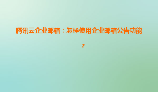 2025-04-07騰訊云企業(yè)郵箱:如何高效使用公告功能? 一、企業(yè)郵箱公告功能的核心價值 企業(yè)郵箱的公告功能是團隊協(xié)作與信息傳達的重要工具,能夠快速實現(xiàn)全員通知、政策發(fā)布、活動提醒等場景需求。騰訊云企業(yè)...