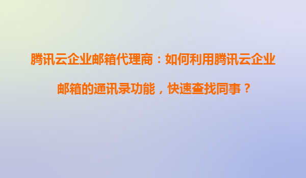 2025-11-02騰訊云企業(yè)郵箱:通訊錄功能助您高效聯(lián)系同事 企業(yè)協(xié)作基石:通訊錄的核心價(jià)值 在現(xiàn)代化辦公場(chǎng)景中,快速定位團(tuán)隊(duì)成員聯(lián)系方式直接影響協(xié)作效率。騰訊云企業(yè)郵箱的通訊錄功能作為企業(yè)級(jí)管理工具,通過(guò)智能...