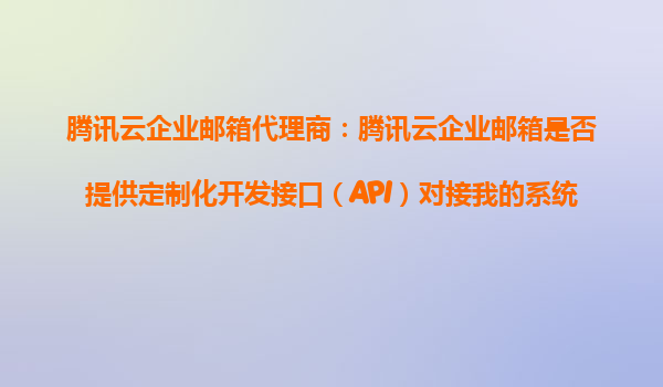 2025-11-02騰訊云企業(yè)郵箱代理商:騰訊云企業(yè)郵箱是否提供定制化開(kāi)發(fā)接口(API)對(duì)接我的系統(tǒng)? 引言 隨著企業(yè)數(shù)字化轉(zhuǎn)型的深入,企業(yè)郵箱的需求已不僅僅局限于基礎(chǔ)的郵件收發(fā)功能。越來(lái)越多的企業(yè)希望通過(guò)API接口將...