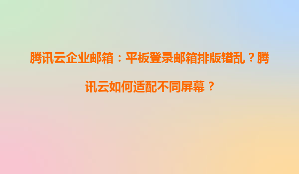 2025-04-03騰訊云企業(yè)郵箱多屏適配方案解析 一、智能響應式布局設計 騰訊云企業(yè)郵箱采用前沿的響應式網(wǎng)頁設計(RWD)技術,通過動態(tài)CSS媒體查詢自動識別平板設備的屏幕分辨率。當檢測到用戶...