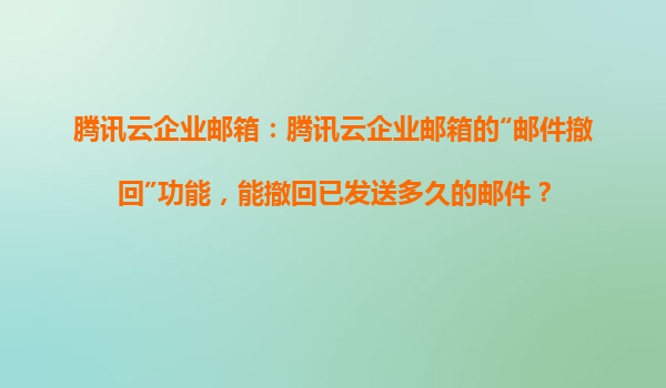 2025-04-02騰訊云企業(yè)郵箱的“郵件撤回”功能解析 一、郵件撤回功能的核心價(jià)值 騰訊云企業(yè)郵箱的郵件撤回功能是企業(yè)級(jí)用戶高效辦公的重要工具,其核心價(jià)值在于降低誤操作風(fēng)險(xiǎn)、提升溝通精準(zhǔn)度。通過(guò)技術(shù)手段...