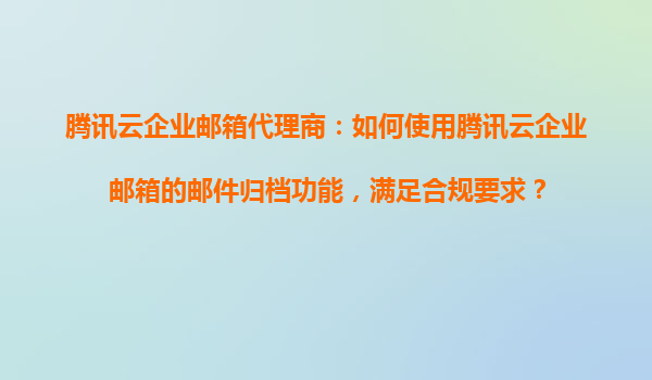 2025-11-01騰訊云企業(yè)郵箱代理商:如何使用騰訊云企業(yè)郵箱的郵件歸檔功能,滿足合規(guī)要求 隨著企業(yè)對數(shù)據(jù)管理和合規(guī)要求的日益嚴(yán)格,郵件歸檔功能成為企業(yè)郵箱解決方案中的重要組成部分。作為騰訊云企業(yè)郵箱代理商,我們深知企...