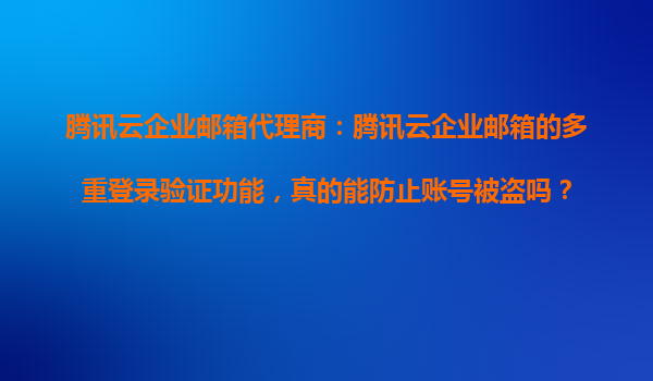 2025-11-01騰訊云企業(yè)郵箱代理商:騰訊云企業(yè)郵箱的多重登錄驗(yàn)證功能,真的能防止賬號被盜嗎? 在當(dāng)今數(shù)字化時(shí)代,企業(yè)信息安全日益重要,企業(yè)郵箱作為企業(yè)內(nèi)部溝通和業(yè)務(wù)往來的重要工具,其安全性更是不容忽視。騰訊...
