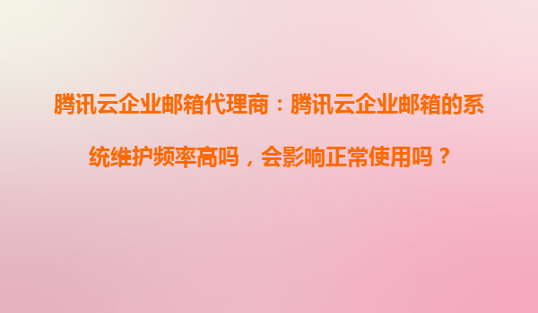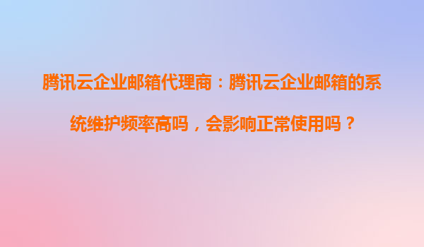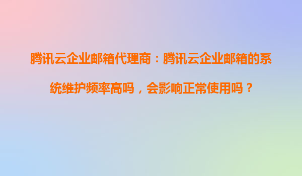 2025-11-01騰訊云企業(yè)郵箱代理商:系統(tǒng)維護(hù)頻率與穩(wěn)定性解析 一、騰訊云企業(yè)郵箱的系統(tǒng)維護(hù)頻率 騰訊云企業(yè)郵箱作為國(guó)內(nèi)領(lǐng)先的企業(yè)級(jí)郵件服務(wù),其系統(tǒng)維護(hù)采用智能化運(yùn)維策略,主要特點(diǎn)包括: ...