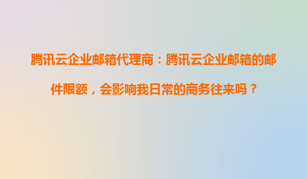 2025-10-31騰訊云企業(yè)郵箱代理商:騰訊云企業(yè)郵箱的郵件限額,會(huì)影響我日常的商務(wù)往來(lái)嗎? 一、騰訊云企業(yè)郵箱郵件限額概述 騰訊云企業(yè)郵箱作為國(guó)內(nèi)領(lǐng)先的企業(yè)級(jí)通信解決方案,為保障服務(wù)穩(wěn)定和資源公平分配,設(shè)定...