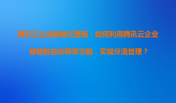 2025-10-31騰訊云企業(yè)郵箱代理商:如何利用騰訊云企業(yè)郵箱的自動(dòng)轉(zhuǎn)發(fā)功能,實(shí)現(xiàn)分流管理? 一、騰訊云企業(yè)郵箱與代理商的價(jià)值 騰訊云企業(yè)郵箱作為騰訊旗下的企業(yè)級(jí)郵件服務(wù),憑借穩(wěn)定、安全、高效的特性,成為眾...