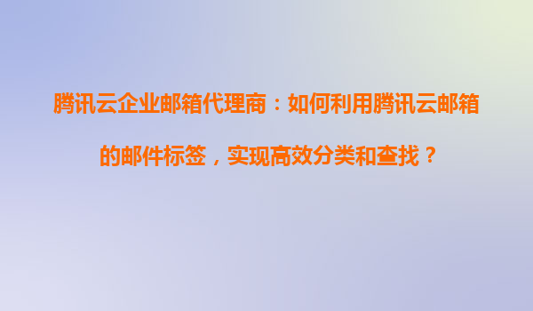 2025-10-31騰訊云企業(yè)郵箱代理商:如何利用騰訊云郵箱的郵件標(biāo)簽,實(shí)現(xiàn)高效分類和查找? 在當(dāng)今快節(jié)奏的商業(yè)環(huán)境中,高效的郵件管理是每個(gè)企業(yè)不可或缺的一部分。作為騰訊云企業(yè)郵箱代理商,我們深知企業(yè)用戶對(duì)郵件分類和...