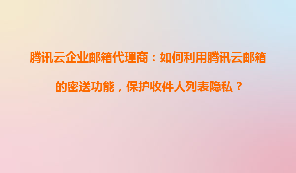 2025-10-31騰訊云企業(yè)郵箱代理商指南:如何利用密送功能保護(hù)收件人隱私 引言:企業(yè)郵件隱私的重要性 在商業(yè)溝通中,保護(hù)收件人隱私是企業(yè)的基本責(zé)任。騰訊云企業(yè)郵箱的密送(BCC)功能能夠有效隱藏郵件接收者信息,避免信息泄...