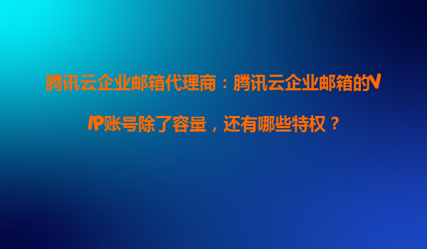2025-10-30騰訊云企業(yè)郵箱代理商:騰訊云企業(yè)郵箱VIP賬號的特權與優(yōu)勢 作為騰訊云企業(yè)郵箱的代理商,我們深知VIP賬號是企業(yè)高效辦公的重要工具。除了郵箱容量更大以外,VIP賬號還擁有多項特權,結(jié)合騰訊云的強大技術實力和生...