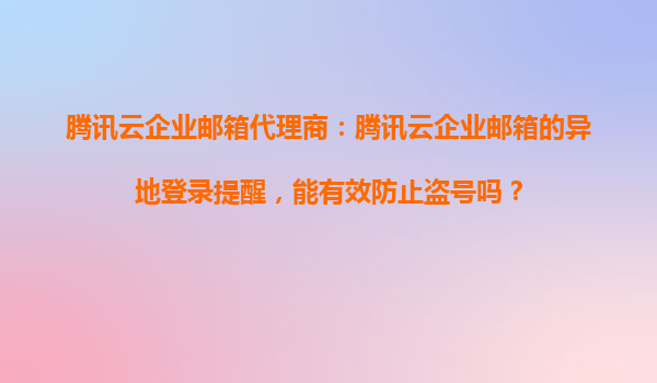 2025-10-29騰訊云企業(yè)郵箱代理商:異地登錄提醒有效守護(hù)賬號(hào)安全 引言 在數(shù)字化轉(zhuǎn)型加速的今天,企業(yè)郵箱作為內(nèi)外溝通的核心工具,其安全性直接關(guān)系到商業(yè)機(jī)密與數(shù)據(jù)資產(chǎn)。騰訊云企業(yè)郵箱通過(guò)多項(xiàng)智能防護(hù)機(jī)制,尤其是...