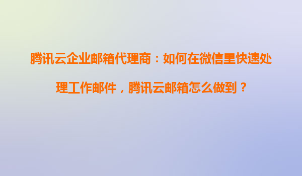 2025-10-29騰訊云企業(yè)郵箱代理商:如何在微信里快速處理工作郵件,騰訊云郵箱怎么做到? 隨著移動(dòng)辦公的普及,微信已經(jīng)成為了許多人日常溝通和工作的主要工具。你是否曾想過(guò)在微信里就可以快速處理工作郵件?騰訊云企...