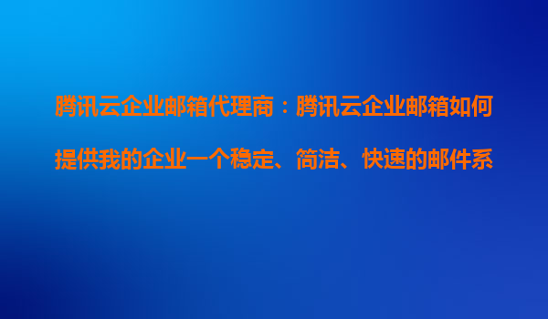 2025-10-26騰訊云企業(yè)郵箱代理商:騰訊云企業(yè)郵箱如何提供我的企業(yè)一個(gè)穩(wěn)定、簡(jiǎn)潔、快速的郵件系統(tǒng)? 一、騰訊云企業(yè)郵箱的核心優(yōu)勢(shì) 作為騰訊云企業(yè)郵箱代理商,我們深知企業(yè)郵箱對(duì)于現(xiàn)代企業(yè)的重要性。騰訊云企...