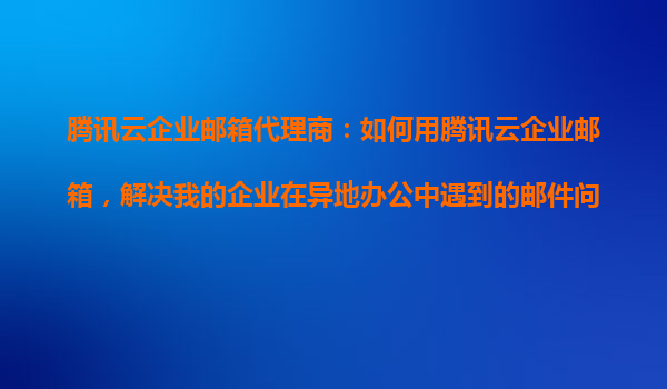 2025-10-26騰訊云企業(yè)郵箱代理商:如何用騰訊云企業(yè)郵箱,解決我的企業(yè)在異地辦公中遇到的郵件問(wèn)題? 在當(dāng)今數(shù)字化時(shí)代,異地辦公已成為許多企業(yè)的常態(tài)。然而,隨之而來(lái)的郵件溝通問(wèn)題,如郵件延遲、數(shù)據(jù)安全、管理混亂等...
