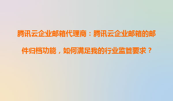 2025-10-26騰訊云企業(yè)郵箱郵件歸檔功能如何滿足行業(yè)監(jiān)管要求 一、行業(yè)監(jiān)管對郵件歸檔的核心要求 在金融、醫(yī)療、法律等高度監(jiān)管的行業(yè)中,郵件作為重要通訊憑證,通常需要滿足以下監(jiān)管要求: 數據完...