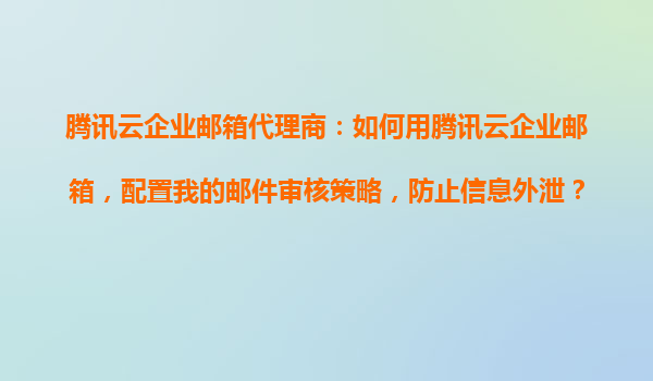 2025-10-25騰訊云企業(yè)郵箱代理商:如何用騰訊云企業(yè)郵箱配置郵件審核策略,防止信息外泄 一、為什么需要郵件審核策略? 在數(shù)字化辦公時(shí)代,企業(yè)郵箱是信息傳遞的核心工具之一。然而,員工誤發(fā)敏感郵件、惡意泄露數(shù)據(jù)...