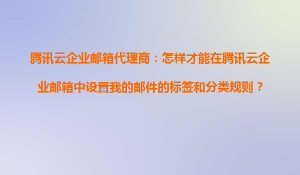2025-10-25騰訊云企業(yè)郵箱代理商指南:如何高效設(shè)置郵件標(biāo)簽與分類規(guī)則 一、騰訊云企業(yè)郵箱的核心優(yōu)勢(shì) 騰訊云企業(yè)郵箱作為國內(nèi)領(lǐng)先的企業(yè)級(jí)郵件服務(wù),具備以下核心優(yōu)勢(shì): ...