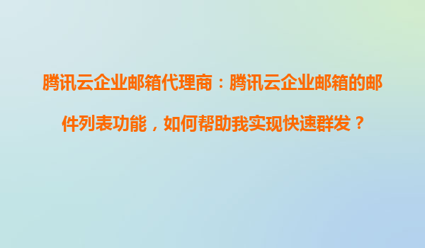 2025-10-24騰訊云企業(yè)郵箱代理商:騰訊云企業(yè)郵箱的郵件列表功能如何幫助實(shí)現(xiàn)快速群發(fā) 一、引言 在現(xiàn)代企業(yè)中,高效的信息傳遞是提升團(tuán)隊(duì)協(xié)作效率的關(guān)鍵。騰訊云企業(yè)郵箱作為一款專業(yè)的企業(yè)通信工具,其強(qiáng)大的郵件列...