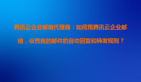 2025-10-24騰訊云企業(yè)郵箱代理商指南:如何設(shè)置自動(dòng)回復(fù)和郵件轉(zhuǎn)發(fā)規(guī)則 一、騰訊云企業(yè)郵箱的核心優(yōu)勢(shì) 騰訊云企業(yè)郵箱作為國(guó)內(nèi)領(lǐng)先的企業(yè)級(jí)郵箱服務(wù),憑借以下優(yōu)勢(shì)助力企...