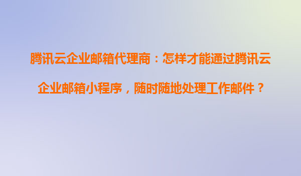 4008-020-360 騰訊云企業(yè)郵箱代理商指南:域名實(shí)名認(rèn)證流程與資料詳解 一、騰訊云企業(yè)郵箱的核心優(yōu)勢(shì) 作為國(guó)內(nèi)領(lǐng)先的云計(jì)算服務(wù)商,騰訊云企業(yè)郵箱憑借以下優(yōu)勢(shì)成為眾多企業(yè)的首選: ...