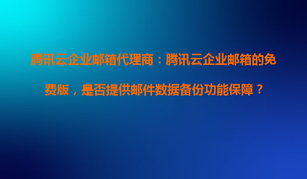 2025-10-23騰訊云企業(yè)郵箱代理商:騰訊云企業(yè)郵箱的免費(fèi)版是否提供郵件數(shù)據(jù)備份功能保障? 一、騰訊云企業(yè)郵箱免費(fèi)版的核心功能概述 騰訊云企業(yè)郵箱作為國內(nèi)領(lǐng)先的企業(yè)級(jí)郵箱服務(wù),憑借其穩(wěn)定性和...
