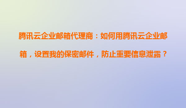 2025-10-23騰訊云企業(yè)郵箱代理商:保密郵件設(shè)置指南 為什么選擇騰訊云企業(yè)郵箱? 騰訊云企業(yè)郵箱作為國內(nèi)領(lǐng)先的企業(yè)級(jí)郵件服務(wù),依托騰訊強(qiáng)大的技術(shù)實(shí)力和安全性保障,為企業(yè)用戶提供高效、穩(wěn)定的郵件通訊解決方案。...