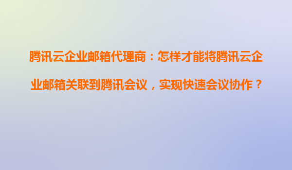 2025-10-23騰訊云企業(yè)郵箱代理商指南:如何關(guān)聯(lián)騰訊云企業(yè)郵箱與騰訊會(huì)議實(shí)現(xiàn)高效協(xié)作 一、騰訊云企業(yè)郵箱與騰訊會(huì)議關(guān)聯(lián)的背景與價(jià)值 隨著企業(yè)數(shù)字化轉(zhuǎn)型加速,高效的內(nèi)部協(xié)作工具已成為企業(yè)運(yùn)營...