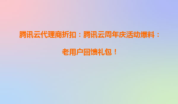 在數(shù)字化轉(zhuǎn)型浪潮中,騰訊云持續(xù)以技術(shù)創(chuàng)新助力企業(yè)發(fā)展。值此周年慶之際,特別推出老用戶回饋計(jì)劃,通過代理商專屬折扣與多重福利組合,為企業(yè)提供更優(yōu)上云選擇。本次活動(dòng)不僅延續(xù)了騰訊云產(chǎn)品高性能、高穩(wěn)定的核心優(yōu)勢(shì),更通過誠(chéng)意滿滿的優(yōu)惠政策,助力用戶實(shí)現(xiàn)降本增效的數(shù)字化升級(jí)。