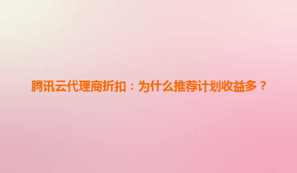 騰訊云代理商折扣:為什么推薦計劃收益多?