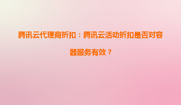 騰訊云代理商折扣:騰訊云活動折扣是否對容器服務(wù)有效?