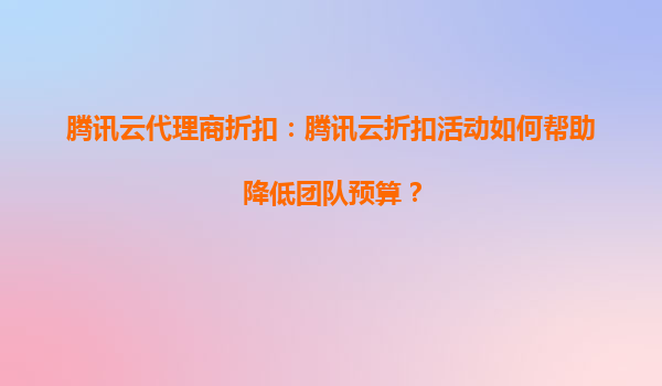 騰訊云代理商折扣:騰訊云折扣活動如何幫助降低團(tuán)隊預(yù)算?
