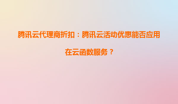 騰訊云代理商折扣與云函數(shù)服務(wù)的完美結(jié)合