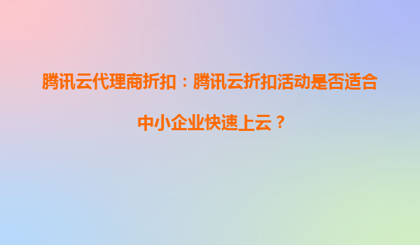 騰訊云代理商折扣助力中小企業(yè)快速上云