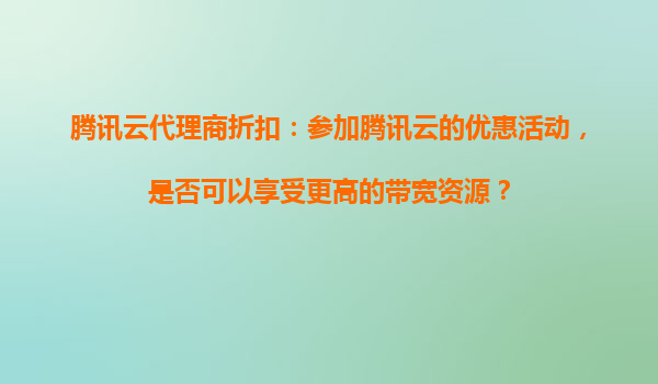 騰訊云代理商折扣:參加騰訊云的優(yōu)惠活動(dòng),是否可以享受更高的帶寬資源?