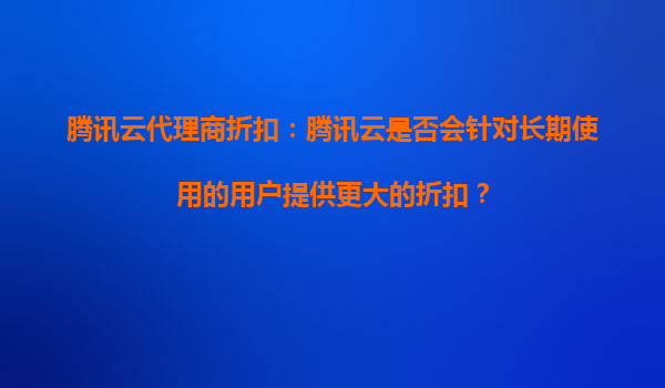 騰訊云代理商折扣:長(zhǎng)期用戶(hù)的專(zhuān)屬優(yōu)惠策略