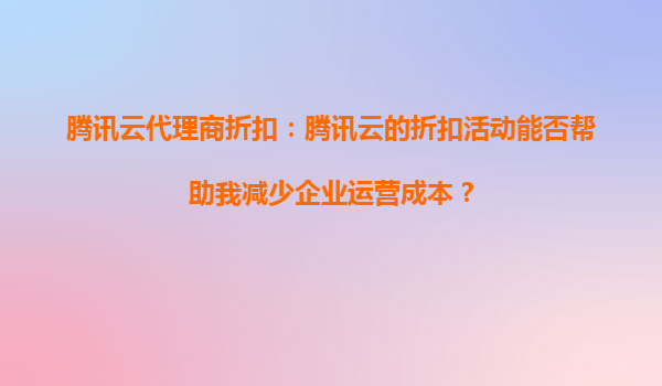 騰訊云代理商折扣:騰訊云的折扣活動(dòng)能否幫助我減少企業(yè)運(yùn)營(yíng)成本?