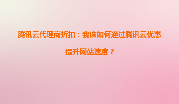 騰訊云代理商折扣:如何通過(guò)騰訊云優(yōu)惠提升網(wǎng)站速度?