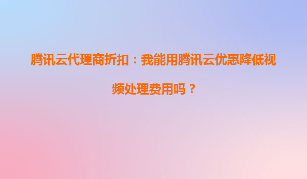 騰訊云代理商折扣:我能用騰訊云優(yōu)惠降低視頻處理費(fèi)用嗎?