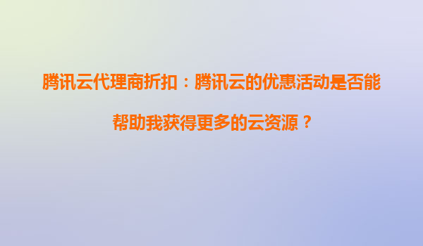 2025-09-16騰訊云代理商折扣:騰訊云的折扣活動能支持哪些類型的云產(chǎn)品? 一、騰訊云代理商折扣概述 騰訊云作為國內(nèi)領(lǐng)先的云計算服務(wù)提供商,為企業(yè)和開發(fā)者提供了豐富的云產(chǎn)品與服務(wù)。為了進一步降低用戶的...
