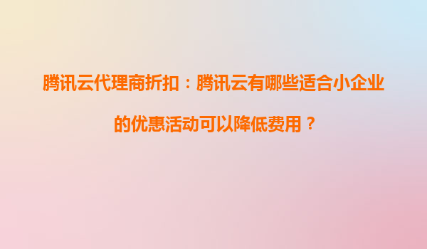 2025-09-16騰訊云代理商折扣:騰訊云有哪些適合小企業(yè)的優(yōu)惠活動可以降低費用? 引言 云計算已經(jīng)成為現(xiàn)代企業(yè)數(shù)字化發(fā)展的重要組成部分。對于中小企業(yè)而言,如何在有限的預(yù)算內(nèi)選擇合適的云計算服務(wù)尤為關(guān)鍵。作為國內(nèi)領(lǐng)先的...